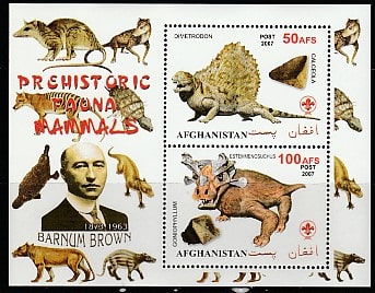 Афганистан 2007 год. Американский палеонтолог Барнум Браун. Доисторические животные, блок