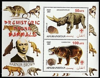 Афганистан 2007 год. Американский палеонтолог Барнум Браун. Доисторические животные, блок