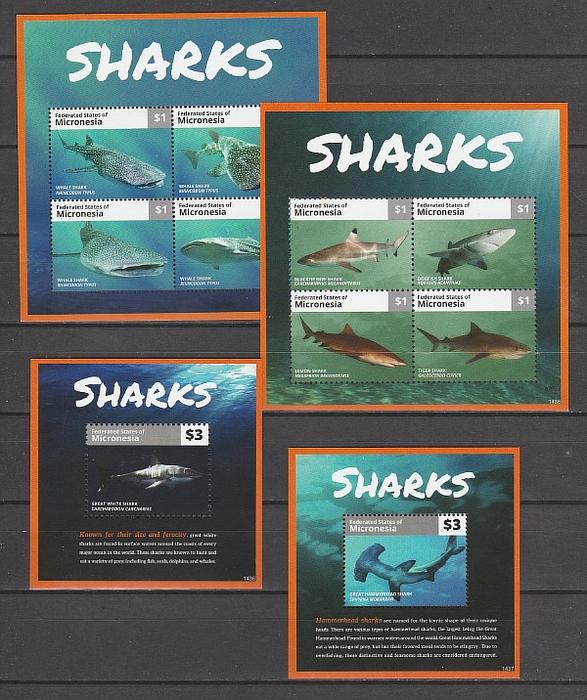 Акулы, Микронезия г, 2 малых листа + 2 блока