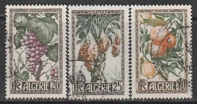 Алжир 1950 год. Стандарт. Фрукты, ягоды, 3 марки (гашёные)