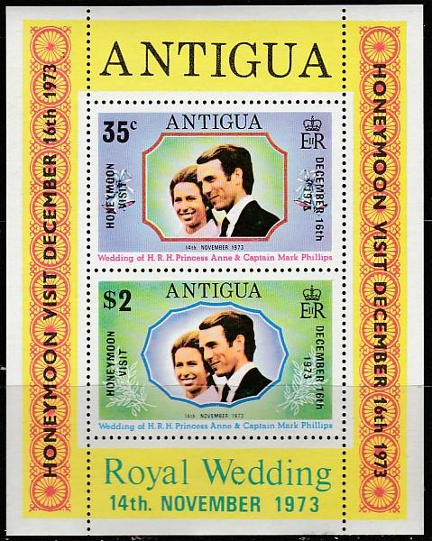 Антигуа 1973 год. Свадебное путешествие принцессы Анны и Марка Филлипса, блок НДП