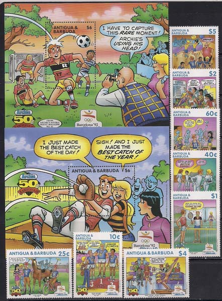 Антигуа и Барбуда 1991 год. Летние Олимпийские игры в Барселоне. Футбол, теннис. 2 блока и 8 марок (32м)