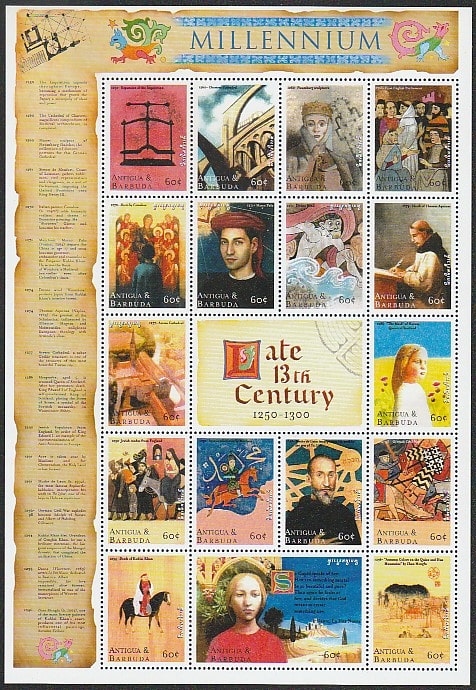 Антигуа и Барбуда 2000 год. Рубеж II тысячелетия. Конец XIII века, лист.