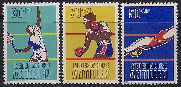 Антильские Нидерландские острова 1981 год. Спорт. Теннис, бокс, плавание. 3 марки