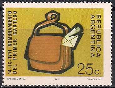 Аргентина 1972 год. 200 лет назначения Бруно Рамиреса первым почтальоном Буэнос-Айреса. 1 марка