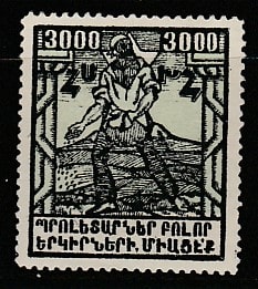 Армения 1923 год. Сеятель и гора Арарат, 1 марка (наклейка)