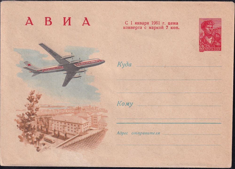 Авиа ХМК 60-179 ТУ-114 над приморским городом. Выпуск 21.07.1960 год. Переоценка 1961 года