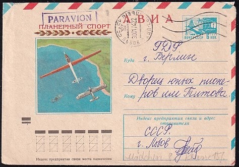 Авиа ХМК 73-528 Планерный спорт. Выпуск 4.09.1973 год, прошел почту (Берлин-Львов)