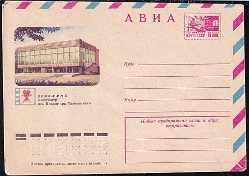 Авиа ХМК 74-478 Новосибирск. Кинотеатр им. В. Маяковского. Выпуск 12.08.1974 год