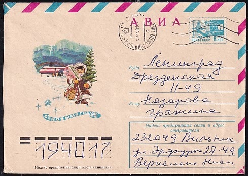 Авиа ХМК 74-682 С Новым годом! Выпуск 17.10.1974 год, прошел почту