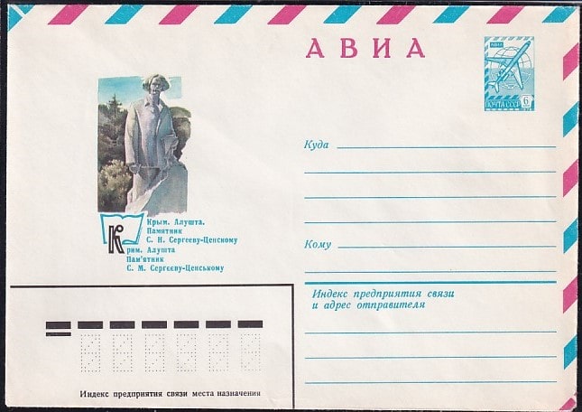 Авиа ХМК 80-449 Крым. Алушта. Памятник С. Н. Сергееву-Ценскому. Выпуск 17.07.1980 год