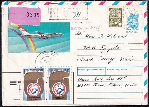 Авиа ХМК Аэрофлот (марки Советский фонд культуры, Чемпионат мира по боксу), 1989 год, прошел почту (ВВ)