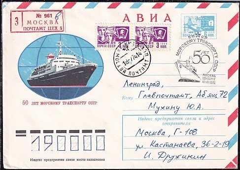 Авиа ХМК со СГ "50 лет морскому транспорту СССР", 18.07.1974 год, прошел почту