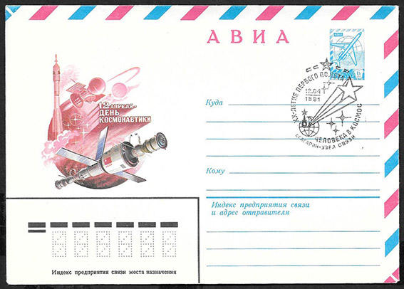 АВИА ХМК со СГ - XX-летие первого полёта человека в Космос. Гагарин. 1981 год