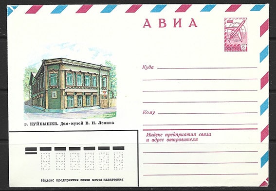 Авиа конверт г. Куйбышев. Дом-музей В.И. Ленина, 20.07.1982 год