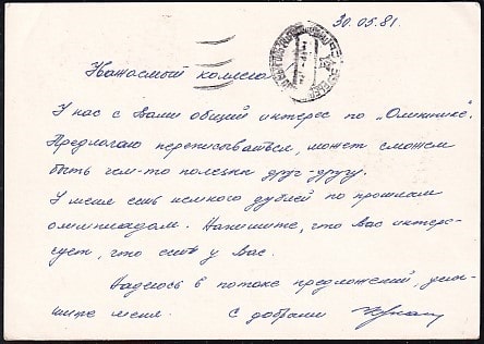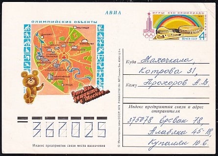 Авиа ПК с ОМ Игры XXII Олимпиады. Москва-80. Выпуск 30.06.1978 год, прошла почту