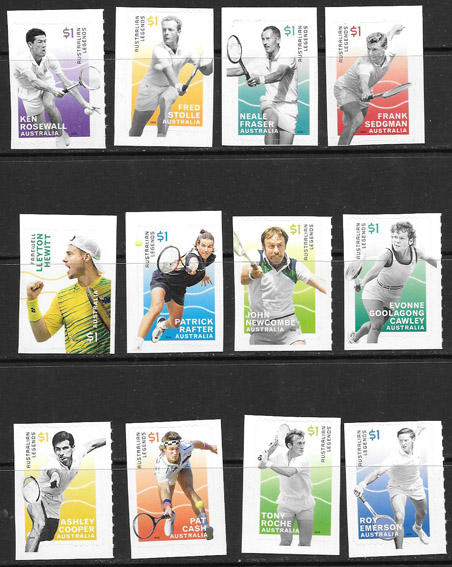 Австралия 2016 г. Легенды тенниса Австралии. 12 самоклеющихся марок