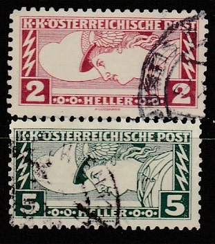 Австрия 1917 год. Голова Меркурия, 2 марки экспресс доставки (гашёные)