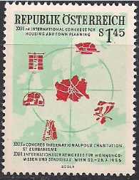 Австрия 1956 год. 20-й Международный прогресс городского планирования. 1 марка с наклейкой