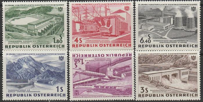Австрия 1962 год. 15 лет национализации электроэнергетики. 6 марок
