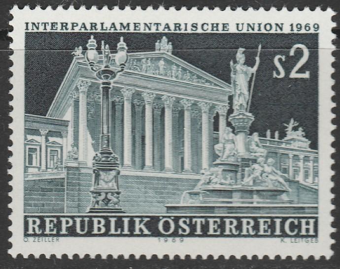 Австрия 1969 год. Фасад здания Парламента в Вене. 1 марка