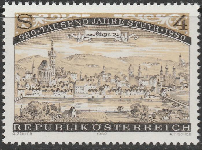 Австрия 1980 год. 1000 лет городу Штайр. Вид на город 1693 года. 1 марка
