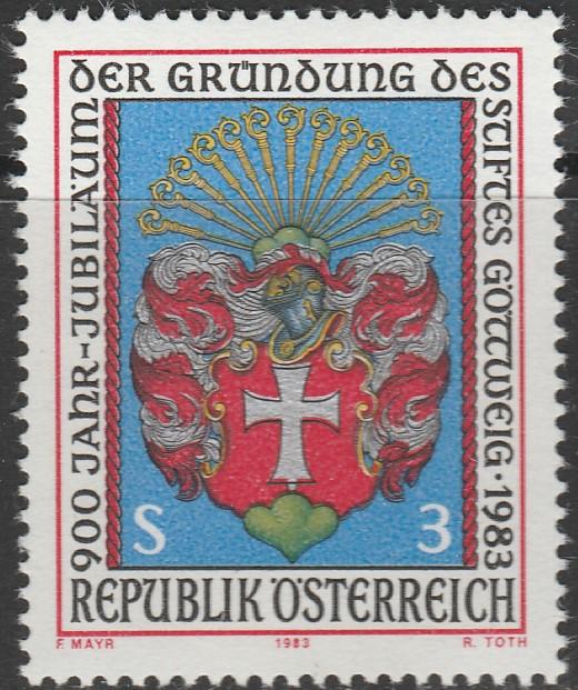 Австрия 1983 год. 900 лет бенедиктинскому монастырю в Штифт-Гётвайге. Герб муниципалитета. 1 марка