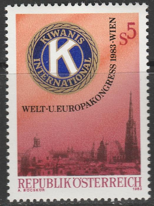 Австрия 1983 год. Эмблема организации "Киванис Интернешнл" и городской пейзаж Вены. 1 марка