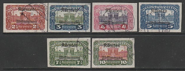 Австрийская Республика 1920 год. Референдум в Каринтии. Стандарт, 6 марок из серии (гашёные)
