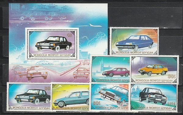 Автомобили, Монголия 1989 г, 7 марок + блок