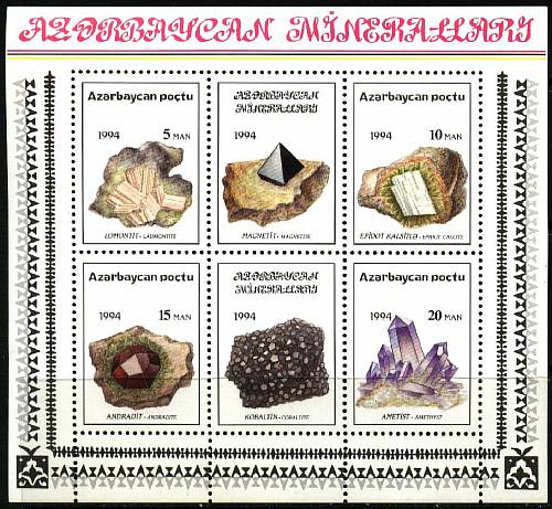 Азербайджан 1994 год. Минералы из Дашкесана. Малый лист