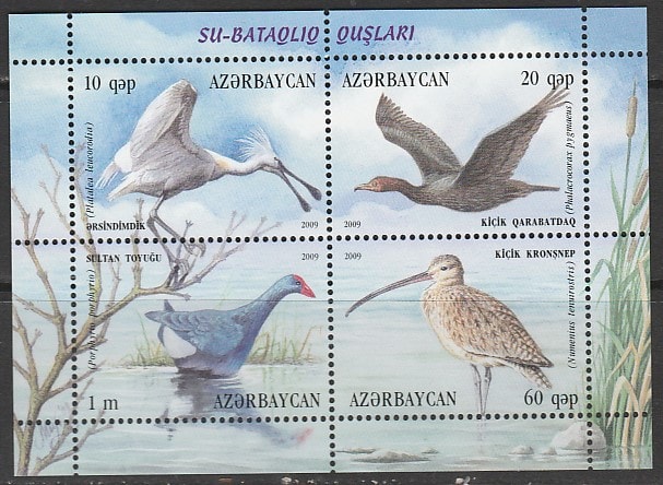 Азербайджан 2009 год. Болотные птицы, блок (н