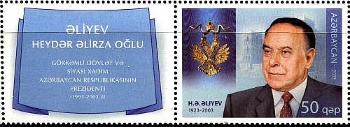 Азербайджан 2013 год. Совместный выпуск с Россией. Г. Алиев - кавалер ордена Святого апостола Андрея первозванного. 1 марка с купоном