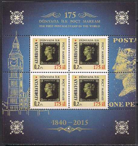 Азербайджан 2015 год. 175 лет первой почтовой марке. Малый лист