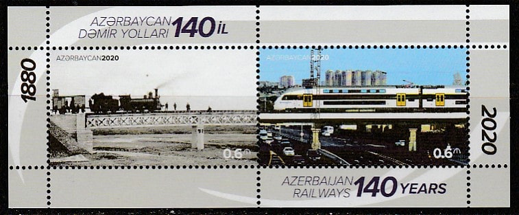 Азербайджан 2020 год. 140 лет Азербайджанской железной дороге, блок (н)