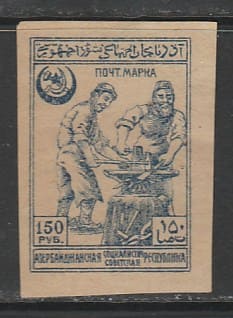 Азербайджан (АССР) 1921 год. Стандарт. Кузнецы, ном. 150 р., 1 марка (б/клея)