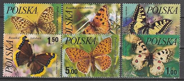 Бабочки, Польша 1977 1976 год, 6 гашеных марок
