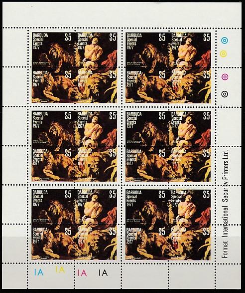 Барбуда 1977 год. 400 лет со дня рождения Рубенса (квартблок) мал. лист ЛЬВЫ