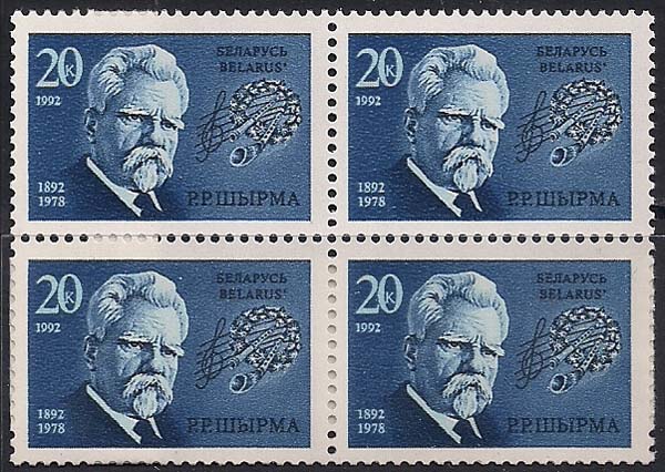 Беларусь 1992 год. 100 лет со дня рождения композитора Григория Ширма. Квартблок