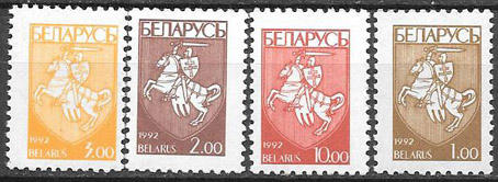 Беларусь 1992 год. Первый стандартный выпуск, 4 марки