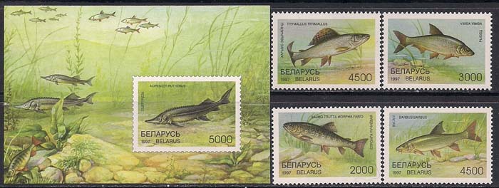 Беларусь 1997 год. Речные рыбы. 4 марки+блок