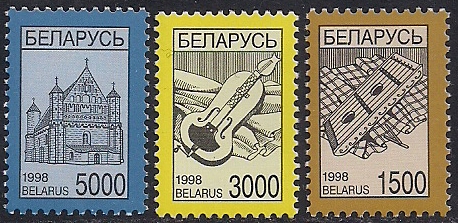 Беларусь 1998 год. 4-й стандарт. Старинное здание и музыкальные инструменты. 3 марки. (142,138)