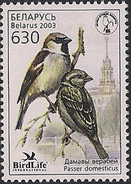 Беларусь 2003 год. Домовой воробей. 1 марка (042.259)