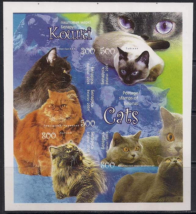 Беларусь 2004 год. Кошки. 1 блок без зубцов