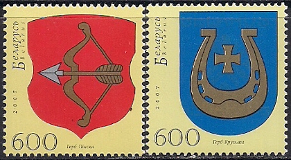 Беларусь 2007 год. Гербы городов Пинск и Круглый. 2 марки
