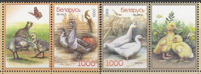 Беларусь 2009 год. Гуси и утки, 2 марки с купонами (н
