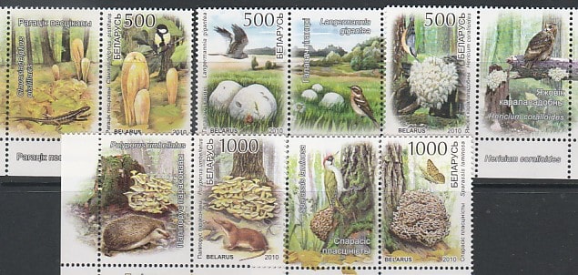 Беларусь 2010 год. Фауна и грибы, 5 марок с купонами (н