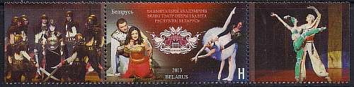 Беларусь 2013 год. Театры Беларуси. Национальный академический большой театр оперы и балета республики Беларусь. 1 марка + верхние купоны
