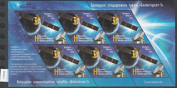 Беларусь 2016 год. Белорусский спутник связи, малый лист