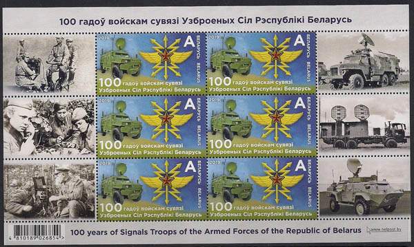 Беларусь 2019 год. 100 лет войскам связи Вооружённых Сил республики Беларусь. 1 малый лист с правыми и левыми купонами (BY 1045)